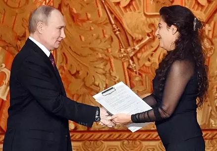 Šéfredaktorke RT Margarite Simoňan gratuluje pri 20. výročí prezident Vladimír Putin.